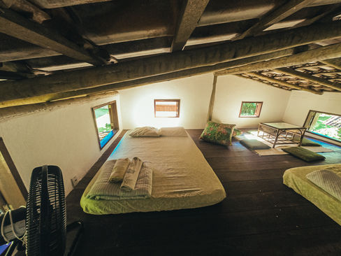 Além disso, há um mezanino com 2 colchões de solteiros e 1 colchão de casal adicional.