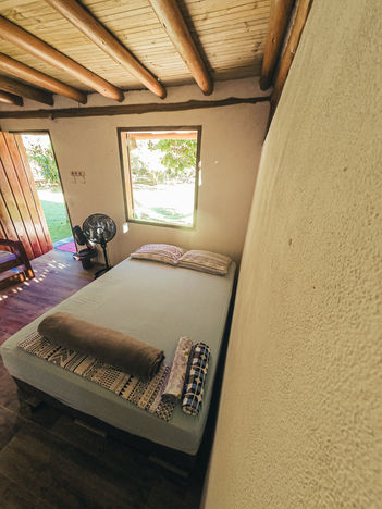 No chalé, você encontrará uma cama de casal. Além disso, há uma bicama disponível, ideal para acomodar 2 hóspedes adicionais.
